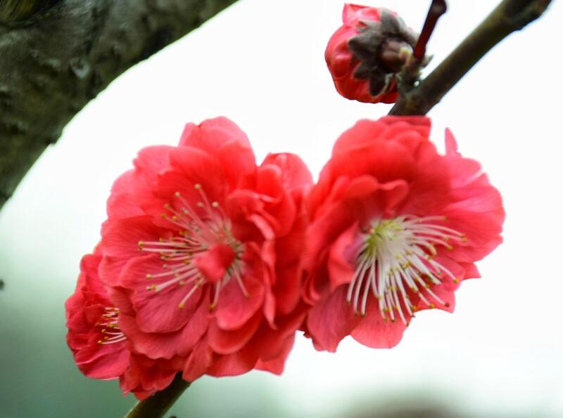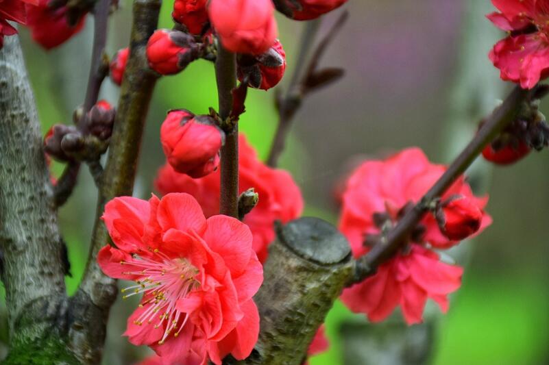 紅色臘梅是落葉小喬木,它的樹形并不高大,枝條呈現(xiàn)出彎曲錯落狀態(tài),帶給人不一樣的美感刺激,在每年三月份左右,美人梅就開始開花,這時候的陽光照射可以讓它的開花效果更好,花朵會持續(xù)到四月份左右,開花以后就會慢慢長出嫩紅色的葉子。