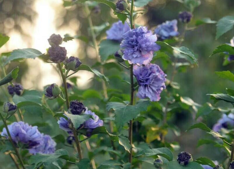 紫花重瓣木槿的生長高度一般可達到4米,當然也有部分的紫花重瓣木槿的高度會高一些。它是一種生長能力非常好的植物,而且分株能力也很強,在充足的陽光下生長是比較好的。