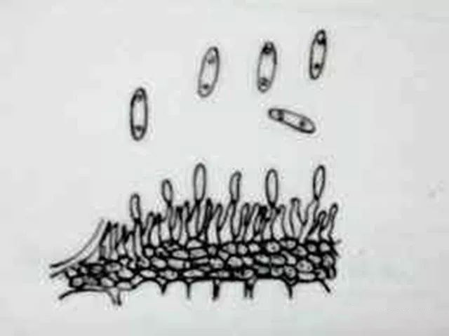 病原菌為薔薇放線孢菌[Actinonema rosae (Lib.)Fr.],屬半知菌亞門、腔孢菌綱、黑盤孢目、放線孢屬。分生孢子盤生于角質(zhì)層下,盤下有呈放射狀分枝的菌絲;分生孢子長(zhǎng)卵形或橢圓形,無(wú)色,雙胞,分隔處略縊縮,兩個(gè)細(xì)胞大小不等,直或彎曲;分生孢子梗很短,無(wú)色。