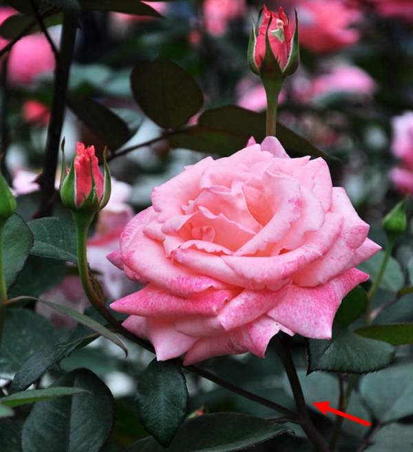 玫瑰的花枝上面都是長(zhǎng)滿的刺,而月季花它的枝干上不帶刺,這個(gè)是它們間最大的區(qū)別;