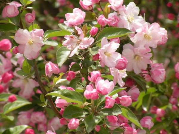 “西府海棠”它是因周恩來總理選中中南海中有最喜愛的海棠花兒而居住一輩子的“西花廳”,由此冠名的。西府海棠花最美麗的時候就是在它將開未開時分,長長的花柄上的花蕾如指甲蓋大小,胭脂樣的紅,仿佛一枚枚胭脂扣。