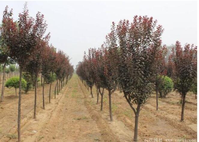 紅葉李還可以和各種各樣的常綠喬木,灌木,落葉地被,草本植物等配合種植成各式各樣的景象,還能裝飾綠地,不只是充實了景象色調,又活躍了園子氣氛。我國聞名的紅葉李園景區有武漢、連云港、都江堰、重慶、上海等,隨著綠化家園在經濟發展,生態文明發展的重要地位,紅葉李目前已成為了全國用量很大的苗木品種。